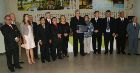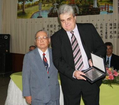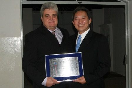 Dr. Wataru entrega placa em homenagem a Dr. Paulo Rabello