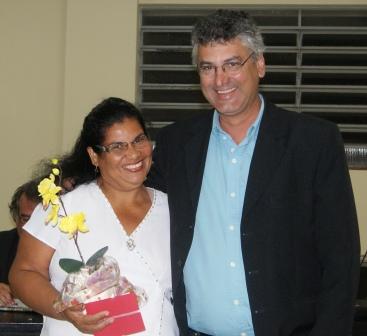 Daniel Rodrigues da Silva ao lado de sua homenageada Rosa Angélica Mormídio Bolonhim